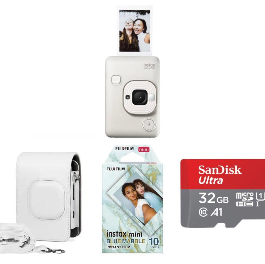 ערכת Fujifilm Instax Mini LiPlay בלבן עם 10 תמונות Blue Marble תיק וכרטיס 32GB