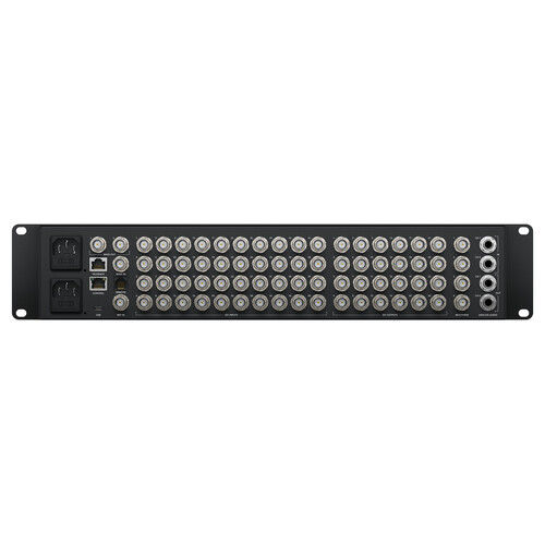 •יציאות וכניסות רבות: המתג מצויד במגוון כניסות ויציאות SDI המאפשרות חיבור למקורות וידאו, מכשירים נוספים וציוד נלווה. הוא כולל גם יציאות HDMI לשליטה חיצונית.