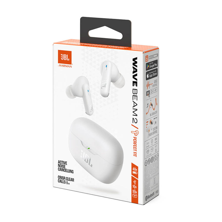 אוזניות אלחוטיות JBL Vibe Beam 2 True Wireless עם ביטול רעשים – צבע לבן