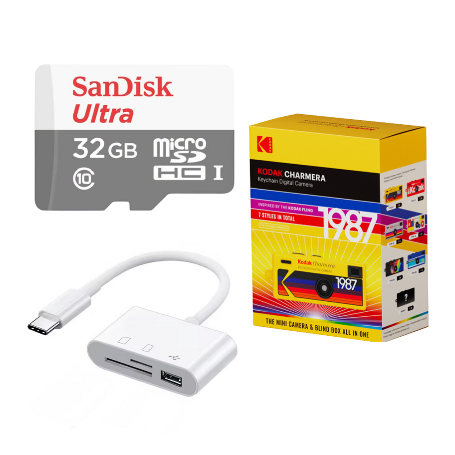 Kodak Charmera Key Chain Digital Camera (Mystery Box), Sandisk 32gb and USB-C