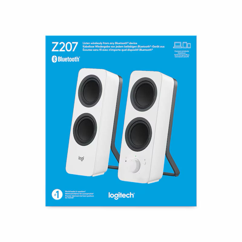 Logitech Z207 הם רמקולים קומפקטיים ואיכותיים למחשב ולמכשירים חכמים, המספקים צליל סטריאו נקי וברור בעיצוב מודרני ואלגנטי בצבע לבן – מושלם לשולחן עבודה נקי ומסודר. הודות לחיבור Bluetooth מובנה, ניתן ליהנות מהשמעת מוזיקה ושמע ללא כבלים מיותרים.