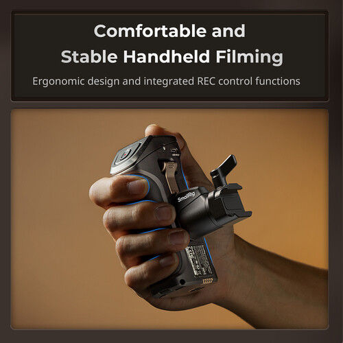 הידית משלבת עיצוב ארגונומי עם מנגנון סיבוב חכם להתאמת זווית האחיזה לפי סגנון הצילום שלך – לצילום ידני ממושך ונוח יותר. כפתור ה-REC המובנה מאפשר התחלה והפסקה של ההקלטה מבלי לגעת בגוף המצלמה, מה שמשפר את הדיוק והזרימה בעבודה המקצועית.
