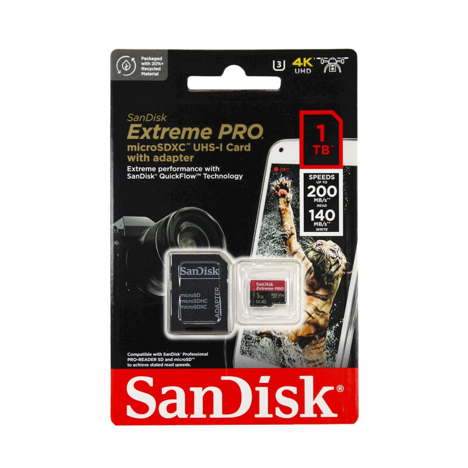 כרטיס זיכרון EXTREME PRO 200MB/s Sandisk MicroSD 4K 1TB עם מתאם SD