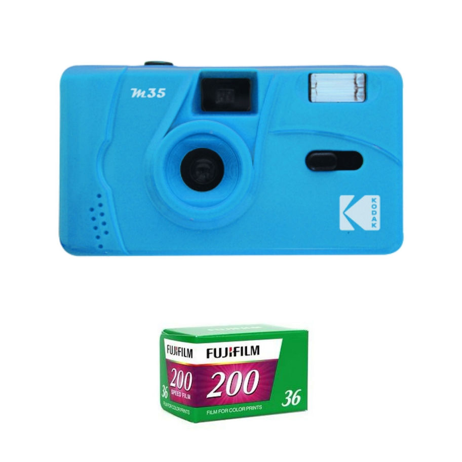 מארז: מצלמה פילים KODAK M35 בצבע תכלת עם פילים 36 תמונות Iso200