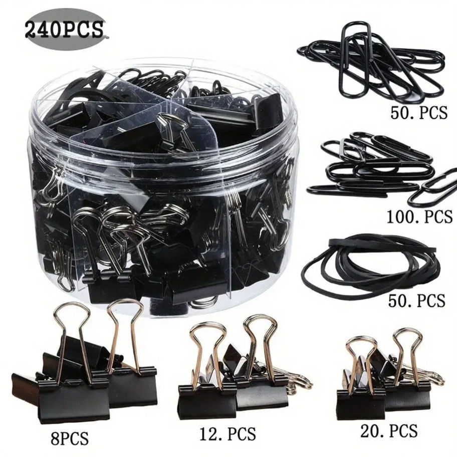 סט גדול (240 יחידות) של גומיות, אטבים ולחצנים